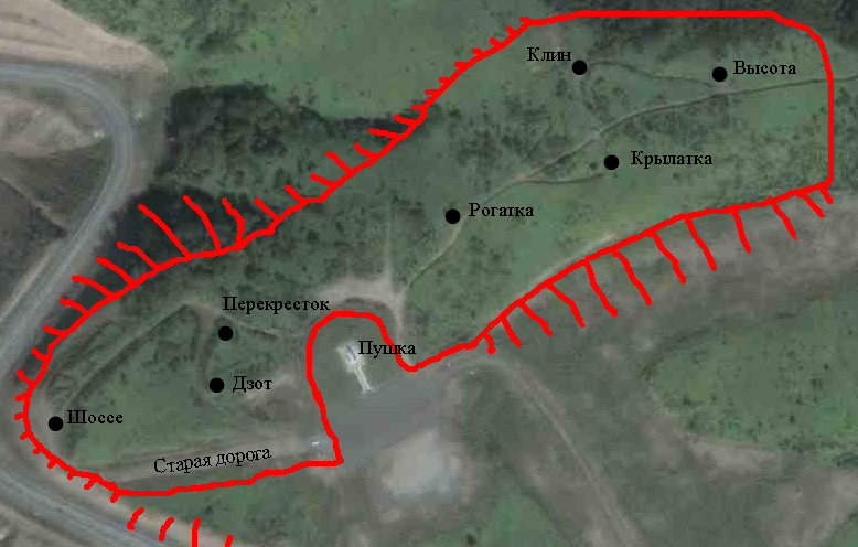 Скорее всего по общему радиоканалу будут оповещения о состоянии точек. Поэтому названия нужно знать всем чтобы понимать о чем речь. Рекомендую иметь копию карты каждому бойцу. Ссылка на Google для тех кто хочет посмотреть как проехать, но в общем то это просто - место перед самым Холмском, самая верхняя точка перевала. Если вы доехали до самого верха и увидели лестницу справа - как раз там пушка. Вам следовало повернуть направо на предыдущем перекресточке. Возвращайтесь и будьте внимательны - сплошная линия запрещает поворот налево и там часто дежурит ГИБДД. Придется поискать где развернуться. А когда повернете уже не заблудитесь - дорога идет прямо к пушке. |